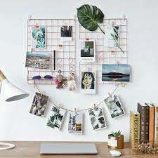 Home Home n Living 35*35cm Ins Style Metal Grid Wall Postcards Iron Mesh Photos Frame Display Home Bedroom DIY Decoration Square Decorative Shelf