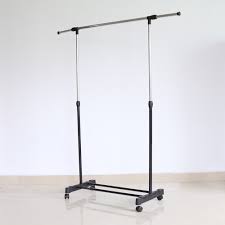 High Quality Adjustable Single Garment Rack Portable Clothes Hanger Organizer Heavy Duty Rail with Wheel HWC
