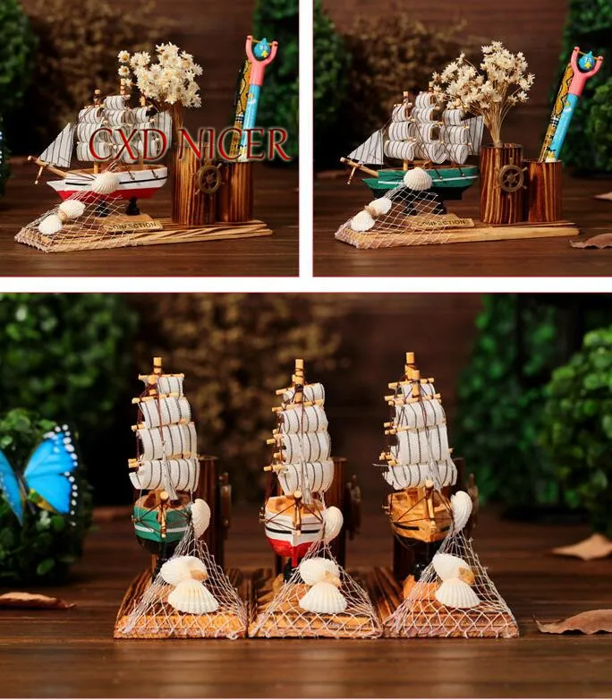 Home Furniture Creative Wooden Sailboat Pen Holder Crafts Carving Desk Organizer Holiday Gifts Stand For Pens Stationery School in pakistan