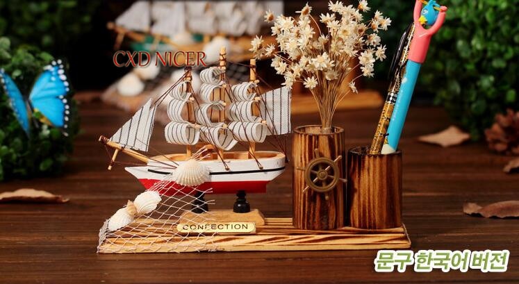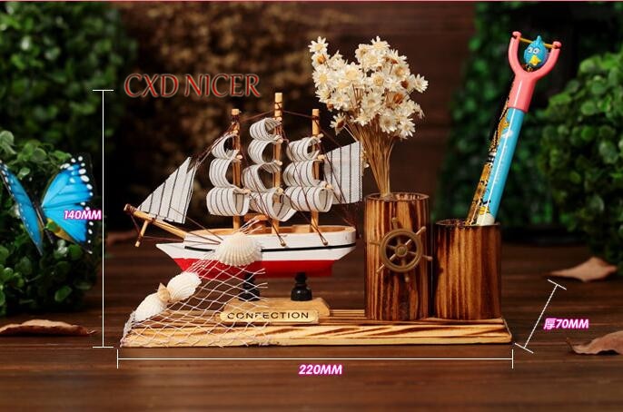 Home Furniture Creative Wooden Sailboat Pen Holder Crafts Carving Desk Organizer Holiday Gifts Stand For Pens Stationery School in pakistan