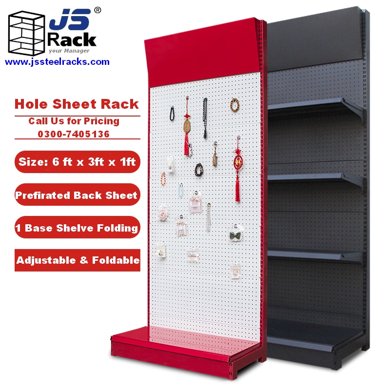 Categories: Home n Living, Shelves, Racks Adjustable online in Pakistan Tags: Hole Sheet Rack, jewelry shop racks, js steel racks