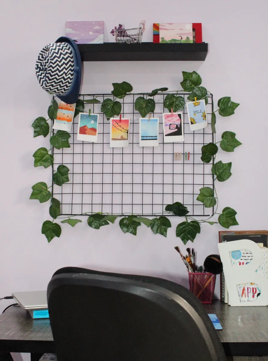 Enhance your study room decor with this modern 65cm x 45cm metal grid for wall hanging. This versatile piece allows you to creatively display pictures and frames, adding a personalized touch to your space. Perfect for showcasing memories or creating an inspiring gallery wall, this grid is a stylish and functional addition to your home decor. Its sleek design complements modern interiors, making it an ideal choice for those seeking a contemporary aesthetic.