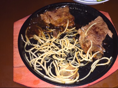 Sizzling round iron Steak Sizzling Grilled dish Fried meat Grilled iron dish Domestic restaurant with iron plate in pakistan