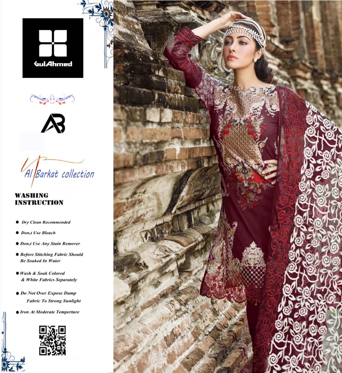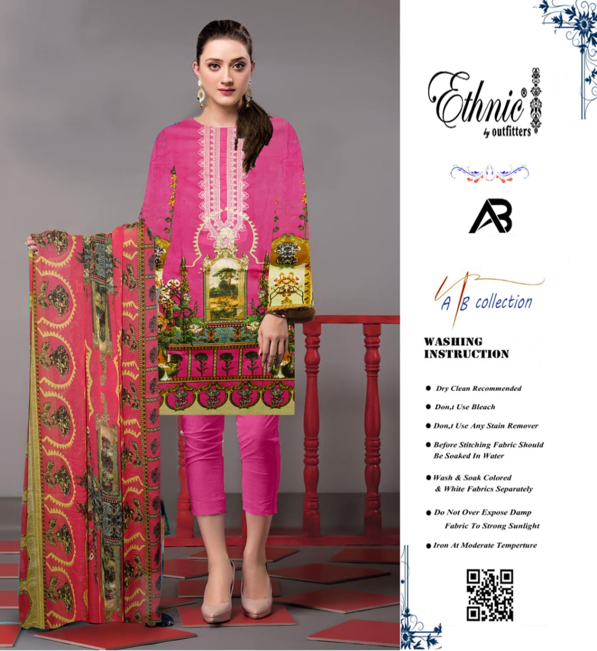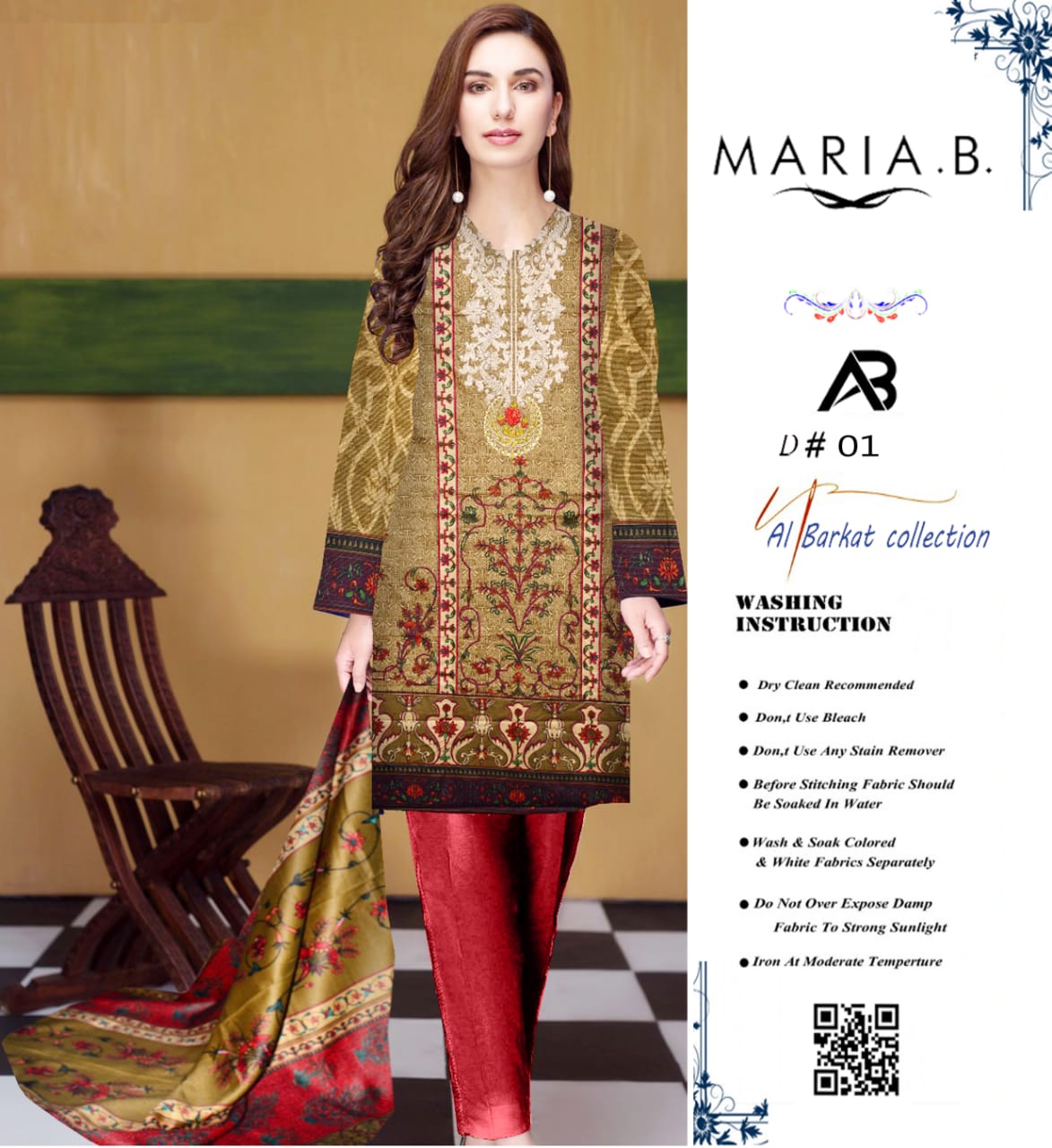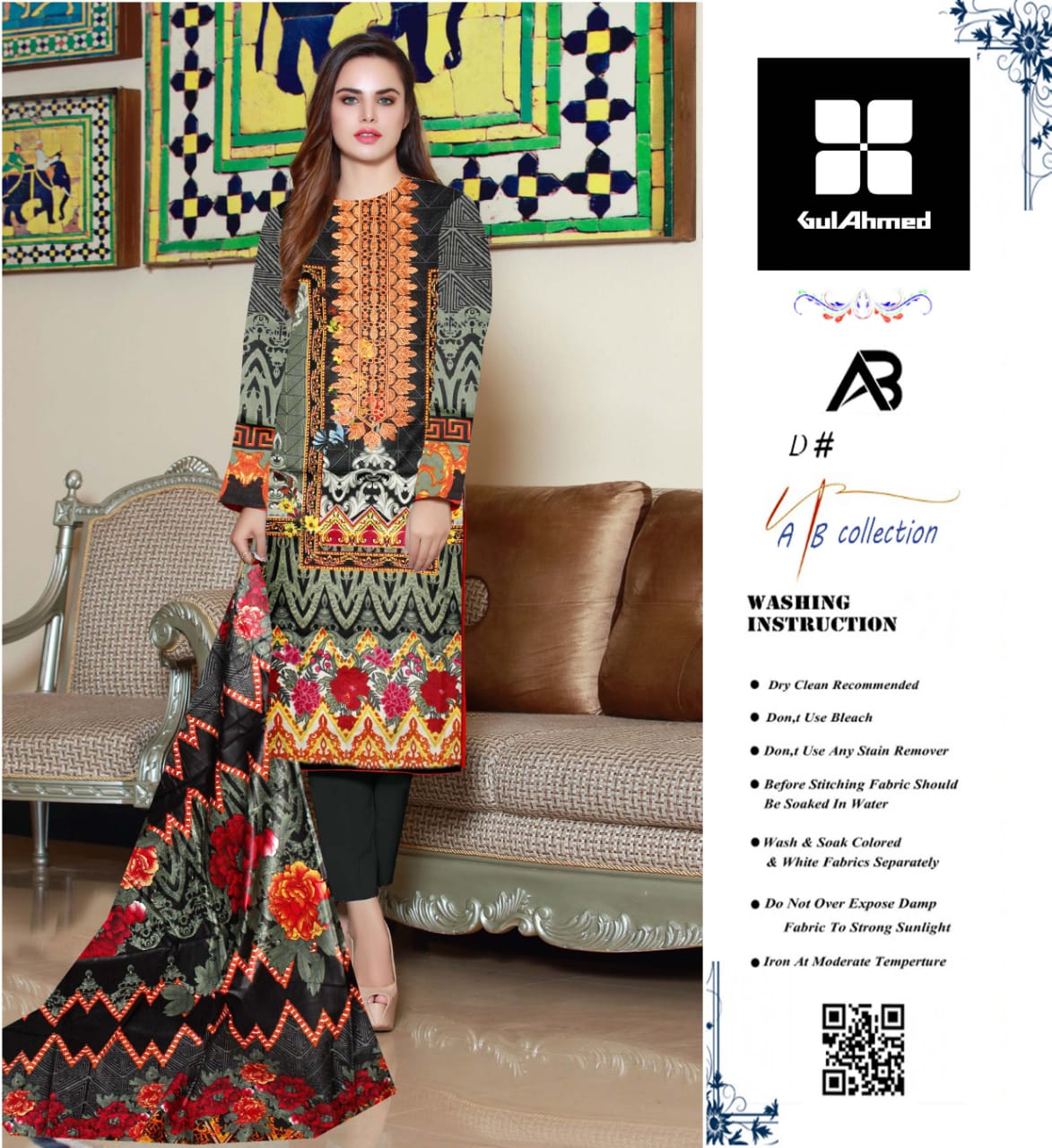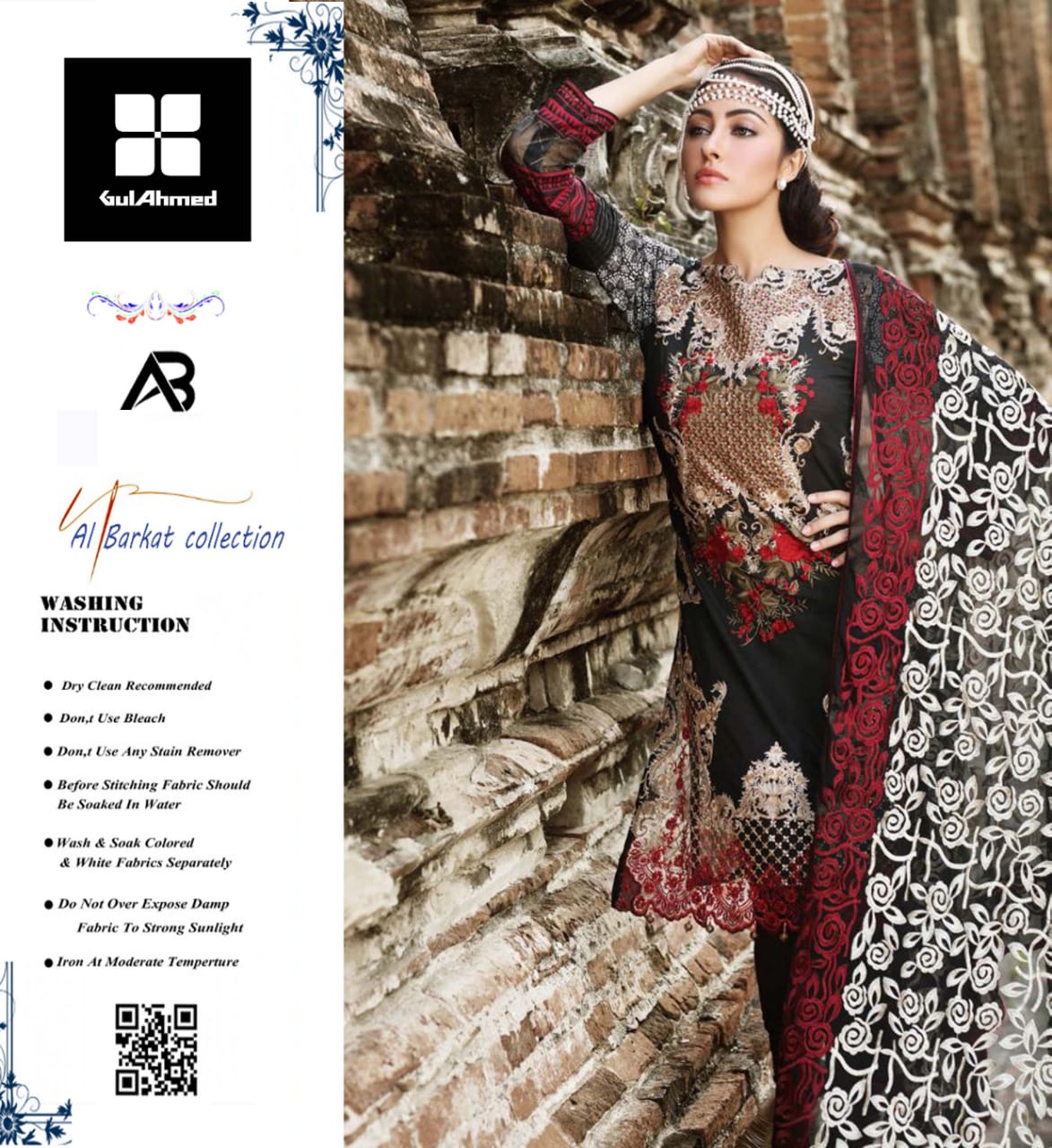 black and red three piece summer lawn suit, Pakistan